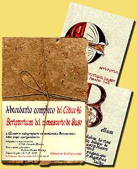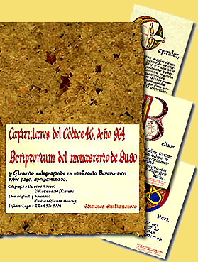 ![]() . Scriptorium du monastère de Suso Detalle de lettre bénéventine Illustrations : Valle Camacho Matute Calligraphie : Valle Camacho Matute Papier parcheminé . |